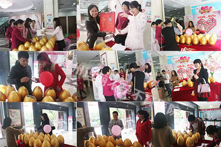 今天每位来院患者都能在一楼活动去参与砸金蛋活动,每个金蛋中都设置了奖品,有免费检查券、免费治疗券、宝宝学步车、碟碗套装等礼品。