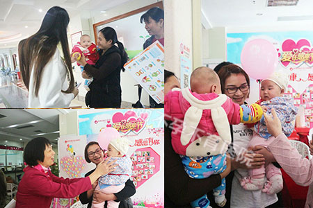 感恩的心是相互的,今天上午,当我们忙着感恩患者的活动时,有两位玛丽妈妈不约而同的带着宝宝来医院报喜感恩,给了我们一个大惊喜。